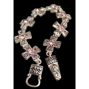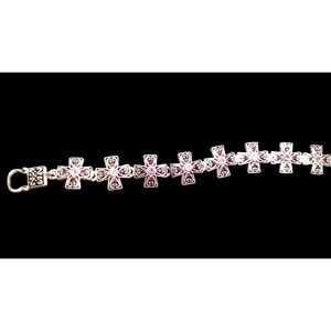Sterling Plated Cross Bracelet and Pendant Pink Stones Magnetic Clasp