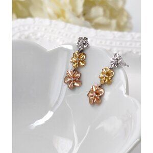 There are three different colored graduated flowers in silver, gold and rose gold tones, each with a cubic zirconia stone in the center. So cute for summer, tropical looks!