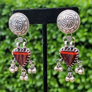 Stunning sterling red handcrafted glass long Artisan boho statement dangle drop post earrings. The earrings were photographed in different lights and settings. They are really gorgeous!!
