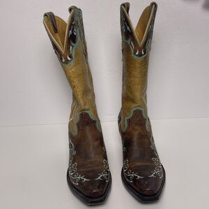 Sterling River Boots Women’s 7B Brown Teal Leather Western Embroidered Pointed