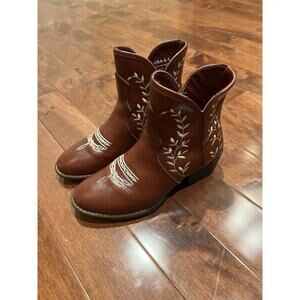 Sterling River Womens 6.5 Brown Embroidered R-Toe Western Cowgirl Boots Booties
