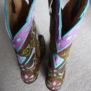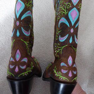Western Leather Boots with Beautiful Embroidery, Great Condition