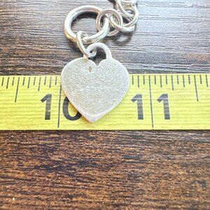 Sterling SIlver 925 Round Link Chain Bracelet Heart Tag Toggle Clasp 7.5" Length