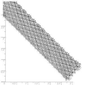 Add radiant sophistication to your collection with the Sterling Shimmer Rhodium-Plated CZ Mesh Bracelet. Crafted in genuine .925 sterling silver and luxuriously plated in rhodium for a lasting shine, this bracelet showcases a breathtaking 759 sparkling cubic zirconia stones set in a flexible mesh design that drapes effortlessly across the wrist.
