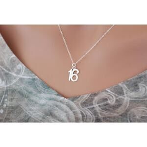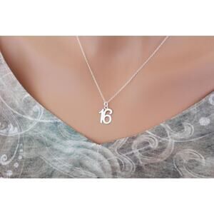 This is a beautiful Sterling Silver 16 Number Charm Necklace. Both the charm and the necklace are Sterling Silver. This Charm comes on an 18 inch chain.