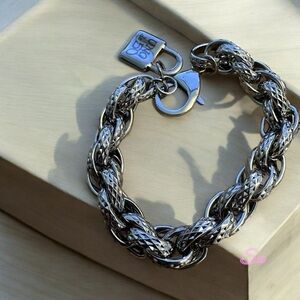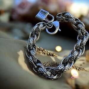 Unisex Elegant silver chain link bracelet with a textured design. Perfect for adding a touch of sophistication to any outfit.