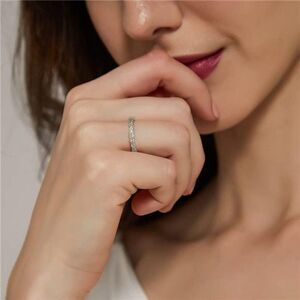 Sterling Silver 2MM Cubic Zirconia CZ Ring Stackable Ring Eternity Ring-SIZE 7