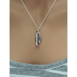 Sterling Silver 3D Trumpet Necklace, Sterling Silver Trumpet Necklace