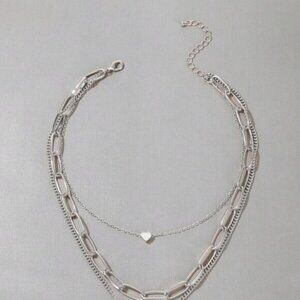 Sterling Silver 3-Layer Chain Necklace | Heart & Lock Pendant