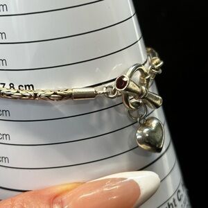 Sterling Silver 3mm Round Byzantine Puffy Heart Garnet Toggle 925 Bracelet 7"