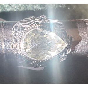 This listing is for a sterling silver ring with a 6ct pear-shaped prasiolite. Beautiful sparkle, definitely an eye-catching piece to add to your collection or great for a gift.