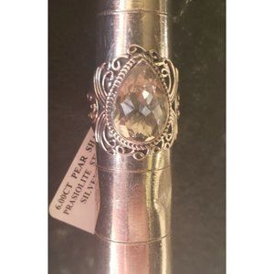 Sterling Silver 6CT Prasiolite pear-shaped ring Sz 6.25 NWT