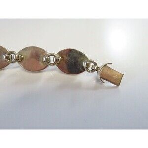 Vintage sterling silver bracelet featuring eight bezel-set azurite-malachite cabochons, known as the “stone of heaven.” Each stone displays vivid blue and green swirls within eye-shaped sterling frames, creating a bold Southwestern aesthetic. The bracelet measures approximately 7 3/4" long and secures with a slide-lock clasp. Marked 925 Mexico, confirming origin and silver purity. Some fill is visible around the bezels to smooth transitions between the stones and settings.