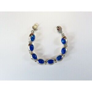 Sterling Silver 7 3/4" Bracelet Azurite-Malachite Blue Green Polished Cabochon