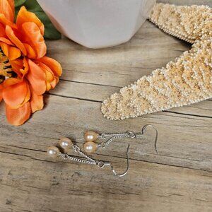 Sterling Silver 7-8mm Peach Freshwater Pearl Dangle Earrings