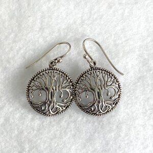Sterling Silver 925 Round Openwork Filigree Tree Of Life Dangle Earrings