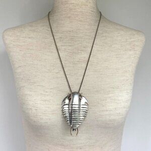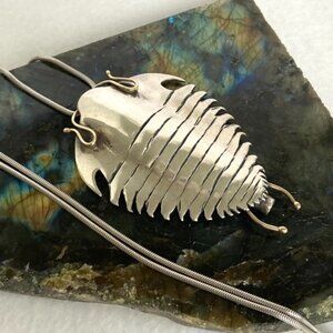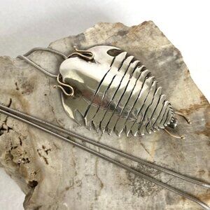 Sterling Silver 925 14K Yellow Gold Manta Ray Trilobite Pendant Necklace 25"