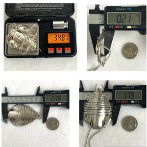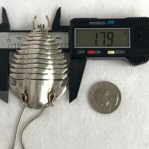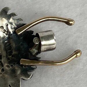NO VISIBLE HALLMARKS - On the back there is some dot patterns (See photo #9) that could be worn hallmarks but I cannot read anything. Marks may have been on the missing tail. Metals tested and confirmed as sterling silver & 14K yellow gold on the antenna and 2 "legs" that are at the bottom of the pendant.