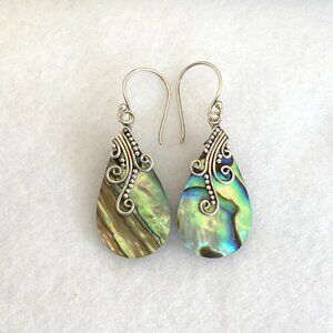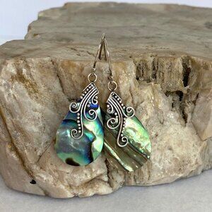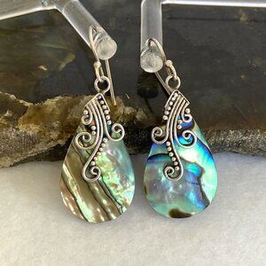 Sterling Silver 925 1.64" Abalone Shell Teardrop Scrollwork Dangle Earrings