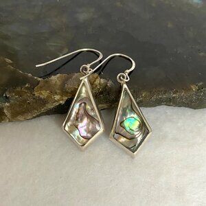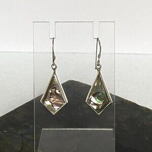 Sterling Silver 925 1.68" Kite Shaped Abalone Shell Inlay Dangle Earrings