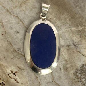 Sterling Silver 925 1.91" Oval Faux Lapis Pendant 9g Thai SX Sally C. Treasures
