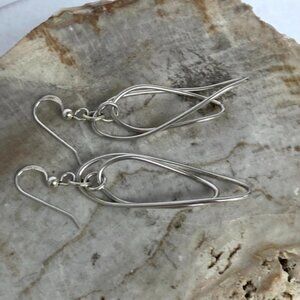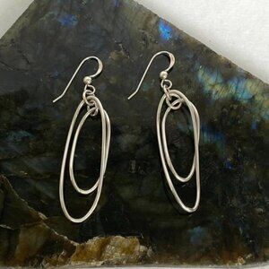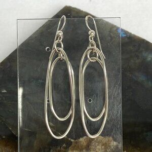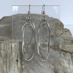 Sterling Silver 925 2.23" Elongated Double Twisted Oval Dangle Earrings