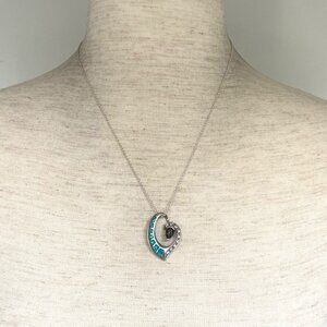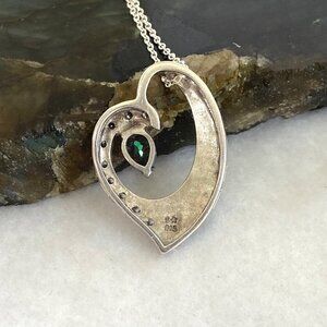Sterling Silver 925 5☆ Pear Shaped Mystic Quartz & Blue Gilson Opal Inlay Pendant Necklace With Cubic Zirconia Accent Stones