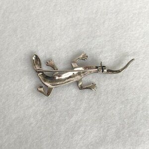 Sterling Silver 925 A 2.39" Marcasite Lizard Animal Figural Brooch