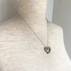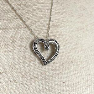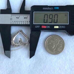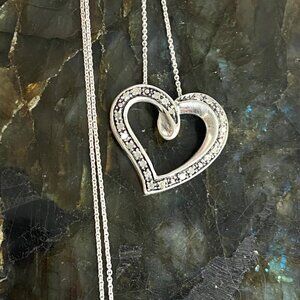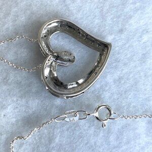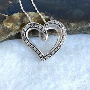 Sterling Silver 925 AFJC Diamond Asymmetric Heart Pendant Necklace 18" Chain
