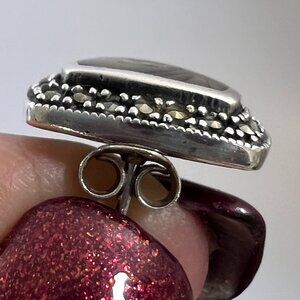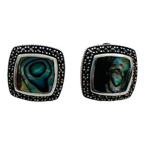Sterling Silver 925 Abalone & Marcasite Pierced Earrings Signed KTH, 7.6 grams