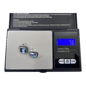 These vintage Sterling Silver 925 Abalone & Marcasite Pierced Earrings by KTH are a beautiful addition to any jewelry collection. The natural Abalone shell main stone in multicolor adds a unique touch to the earrings, while the Marcasite secondary stone provides a touch of elegance. The studs have a bezel setting and are crafted with sterling silver, making them a durable and high-quality piece of fine jewelry. Ships out in a gift box.