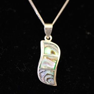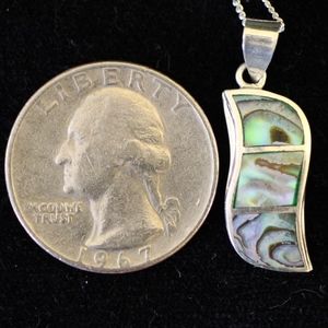 Vintage Sterling Silver 925 Abalone Shell pendant weighs 2.34 grams & is marked 925 on backside.