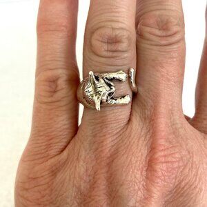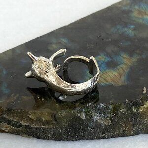Sterling Silver 925 Adjustable 3D Cat Kitten Animal Wide Band Bypass Ring Sz 6