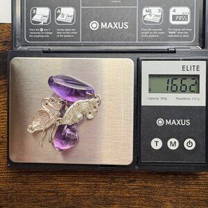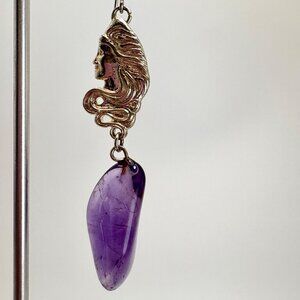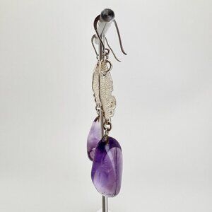 Sterling Silver 925 Amethyst Nugget Victorian Lady Dangle Earrings