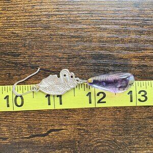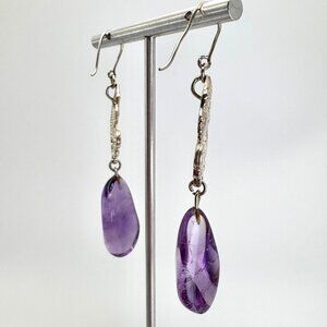 Sterling Silver 925 Amethyst Nugget Victorian Lady Dangle Earrings 3" Length