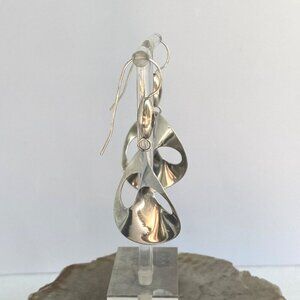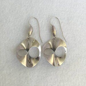 Sterling Silver 925 Artisan Modernist Style Infinity Disc Dangle Drop Earrings
