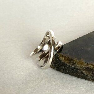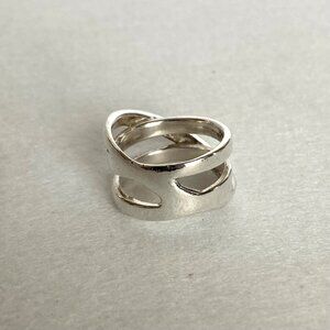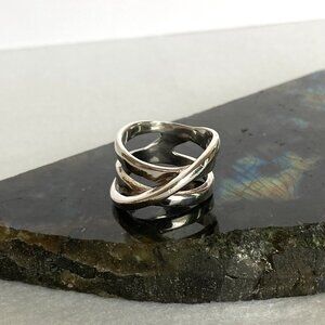 Sterling Silver 925 Asymmetric Criss Cross Lines Saturn Band Ring Sz 7