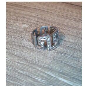 Vintage Sterling Silver 925 Aztec Geometric Design with what seems to be CZ stones Metal tested.