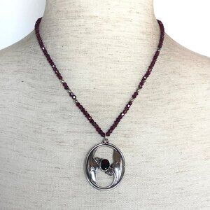 Sterling Silver 925 Faceted Garnet Beaded Oval Art Nouveau Style Garnet Pendant Necklace