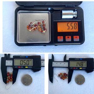 Sterling Silver 925 Beaded Red Jasper Orange Multi-stone Dangle Drop Cluster Earrings