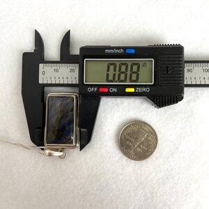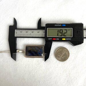 Sterling Silver 925 2" Rectangular Bezel Set Labradorite Pendant Necklace With Blue Schiller Luminescence