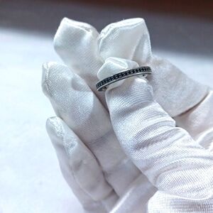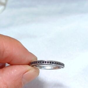 Sterling Silver 925 Black Onyx Deep Ruby Rhinestones Sz 7