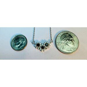 • Sterling Silver 925 Black & White Gemstone Flower Pendant Necklace, 16" Spring Ring Clasp
