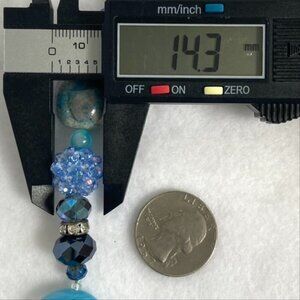 Sterling Silver 925 Blue Dyed Banded Agate & Chrysocolla In Quartz Beaded Necklace
