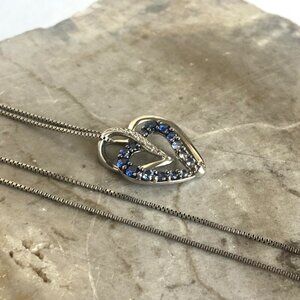 Sterling Silver 925 Blue White Sapphire Diamond Open Heart Pendant Necklace 18"
