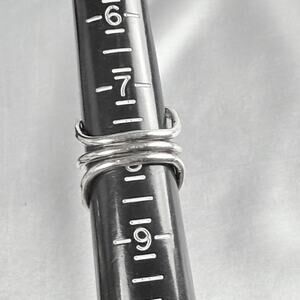 Beautiful vintage modernist sterling silver bow ring. Features an open ribbon/knot design with a central silver bead accent. A unique statement piece perfect for everyday wear or special occasions.