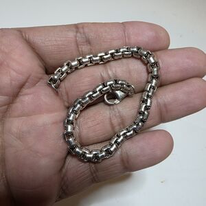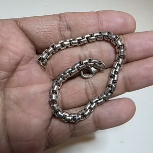 Sterling Silver 925 Box Chain Link Bracelet 7.5 Inches Long Weighs 21 Grams shows signs of wear such as scratches and tarnishing sold as is see pictures for reference