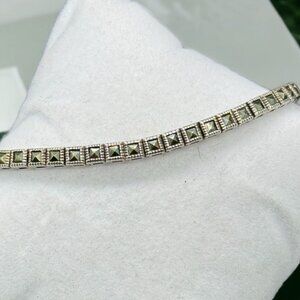 Sterling Silver .925 Bracelet Marcasite Square Link 8.25" Long 14.7 Grams