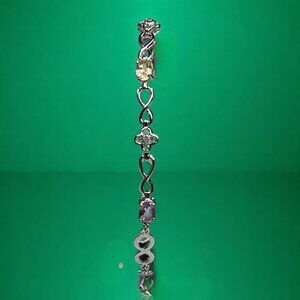 Sterling Silver 925 Bracelet With 3 Multi-Color Gemstones & Infinity Link Design