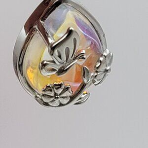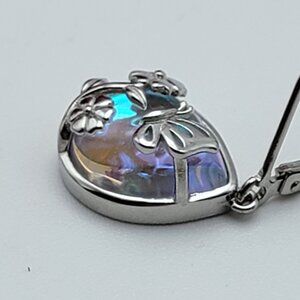 Sterling Silver 925 Butterfly & Flower Adorned Moonstone Dangle Earrings Hinged